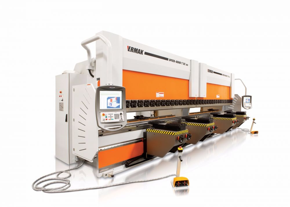 Тандемные типы листогибов используют для нестандартных задач. Тандемы станков Ermaksan чаще изготавливает из уже готовых моделей линеек SPEED BEND или POWER BEND. Оборудование представляет собой сборку из двух или более прессов – каждое решение бывает заточено под обрабатываемую деталь. Особо важна при этом синхронизация хода гибочных балок. Помимо этого, могут потребоваться и нестандартные инструменты.
